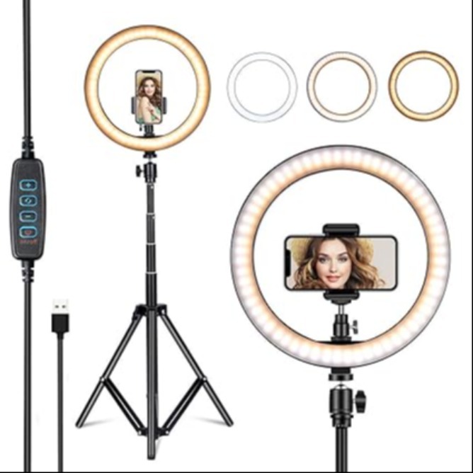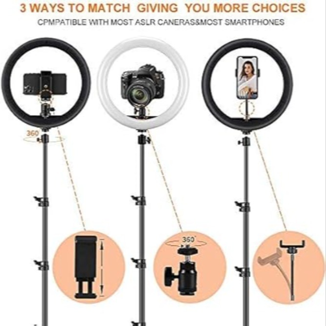 with dimmable led bulbs, selfie ring light with stand provides more brightness light and broader shooting for your photography/ live streaming than others. Circle light 10 levels brightness and 3 light tunes ( warm, nature, cold) will meet your needs for lighting under different occasions.