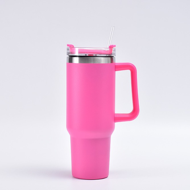 The 40 oz tumbler with handleand straw features triple layer, double wall vacuum insulation technology, keeping your drinks at the perfect temperature, all day long.