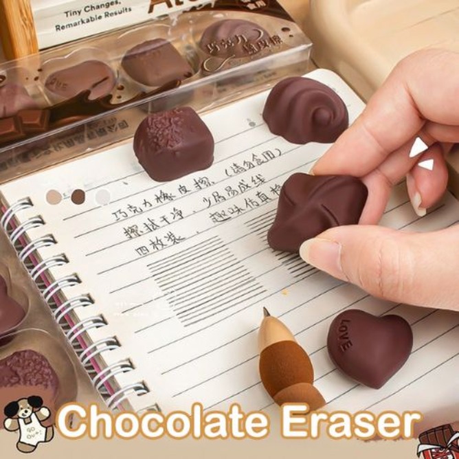 • Set of 4 Erasers: Includes four chocolate-style erasers in assorted designs.