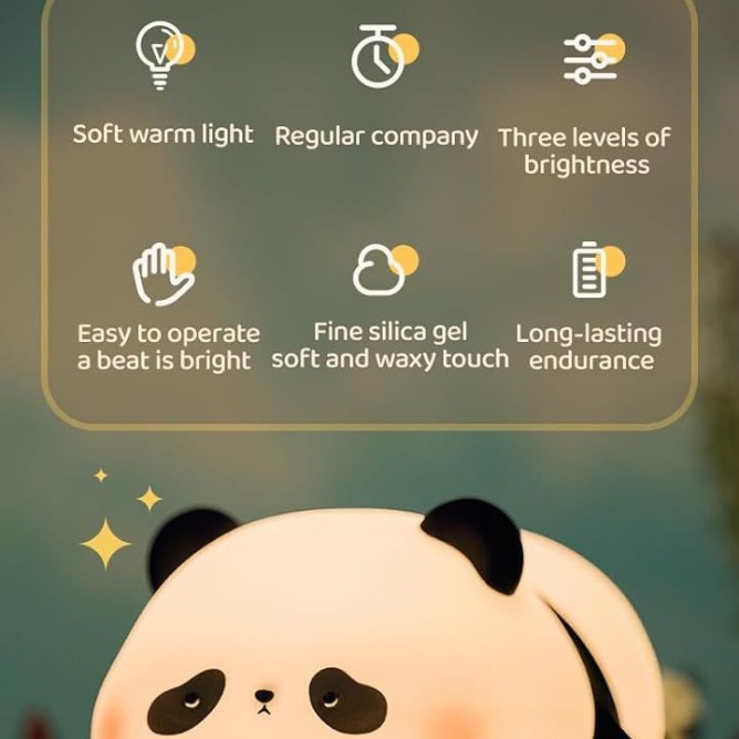 Drift into a calm, soothing bedtime with this adorable sleeping panda night lamp. Shaped like a gently curled-up panda, the lamp features soft silicone skin and an intuitive touch-sensitive surface so one gentle tap brings on a warm glow. The panda’s peaceful expression and cuddly form make it perfect for a child’s room—or any space where you want a comforting ambient light. With its touch controls and rechargeable design, it’s easy to use without fumbling for switches in the dark.