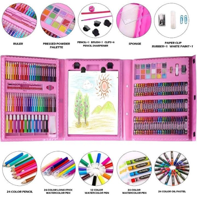 Unleash your child’s creativity with this Deluxe 208pcs Art Set, a complete drawing and coloring kit packed in a beautiful portable case. Designed for kids, this all-in-one set includes everything needed for painting, sketching, and coloring.