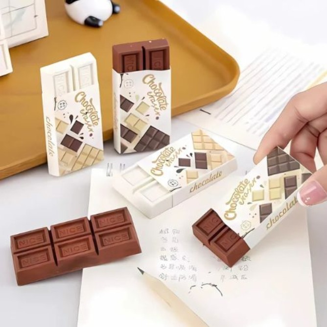This Chocolate Eraser looks just like a real chocolate bar, making it a fun and quirky addition to your stationery collection! Available in two wonderful flavors - Brown chocolate and White chocolate, this eraser is perfect for chocolate lovers. Whether you need to erase pencil mistakes or want a unique accessory for your desk, this eraser combines functionality with charm. It's an ideal back-to-school gift for kids and students and a thoughtful surprise for your sister.