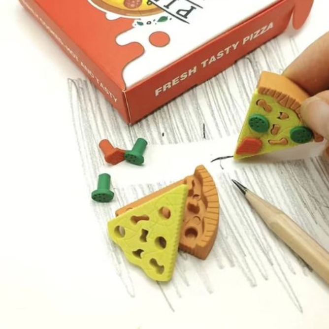 Crafted with precision and care, these erasers are made from high-quality materials, ensuring durability and purpose. Each slice of this pizza eraser set is a miniature work of art, intricately designed to resemble a delicious slice of pizza. Perfectly sized for little hands, these erasers are not just tools for erasing mistakes but also a source of endless amusement.