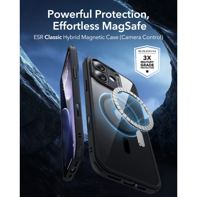 The ESR Classic Hybrid Magnetic Case is designed exclusively for iPhone 17, offering a precise fit that blends strong protection with a slim, modern profile. Its full-armor camera bar protection and shock-absorbing Air Guard corners help shield your phone from everyday drops while keeping the design sleek and lightweight.