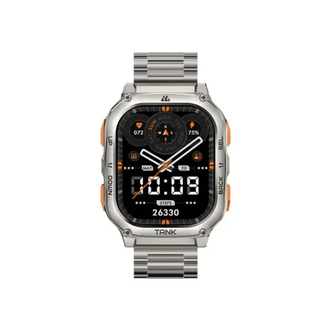 The KOSPET Tank M3 Ultra delivers flagship smartwatch performance, built around the efficient dual-core ATS3085L processor with 256MB NOR memory. Its expansive 1.96″ AMOLED display boasts a high 410×502 resolution and Always-On Display support for sharp, vivid visuals. With a powerful 480mAh cobalt battery offering up to 15 days of typical use and dual-band GPS for precision tracking, it’s made for high-performance users. Packed with advanced health and fitness features, Bluetooth calling, and intelligent sport recognition—this watch does it all. No SIM or camera functionality included.