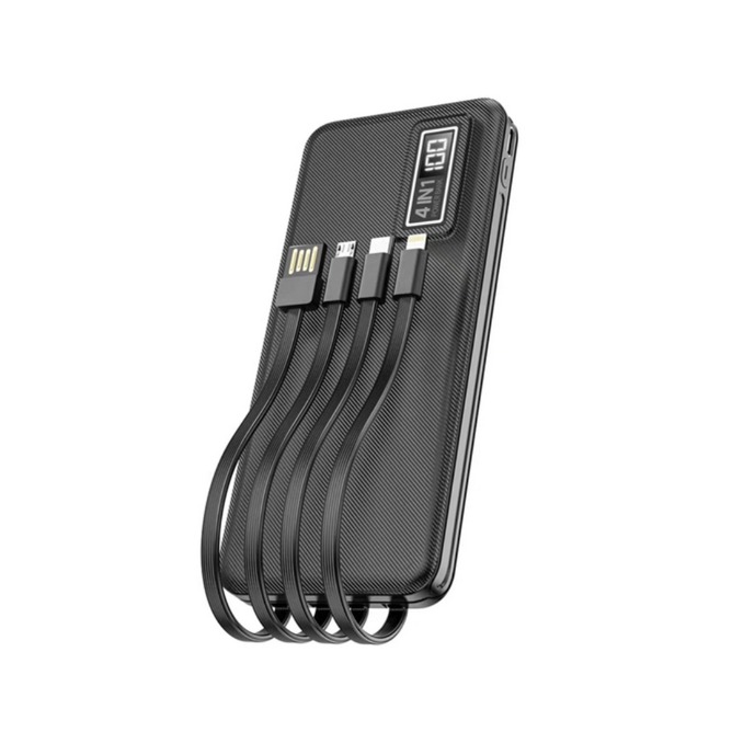 Built-in USB Micro, Type-C, and iPhone cables compatible with iPhone 13/12/11/XR/8/7, iPad, and Samsung Galaxy S20/S21/S22, Tablet, and other smart devices. The built-in USB A input cable recharge the power bank itself. No need to take any charging cables
