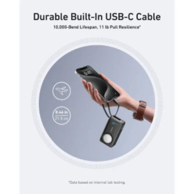 All-in-One Charging | 10,000mAh capacity with Apple Watch charger + built-in USB-C cable |
