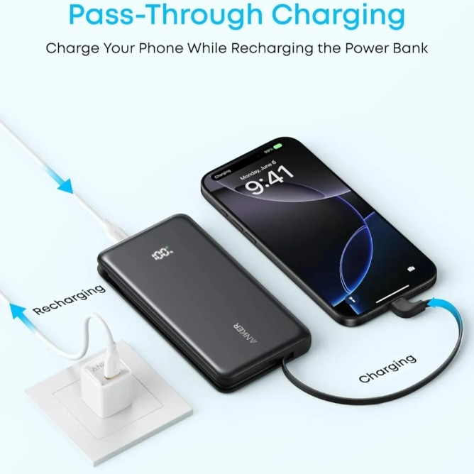 Recharge the power bank itself via its USB-C input at up to 20W, fully topping up in a few hours with a compatible charger. Built tough with safety certifications like CCC, it features protections against overcharge, short circuits, and heat, backed by Anker’s reputation for durable accessories