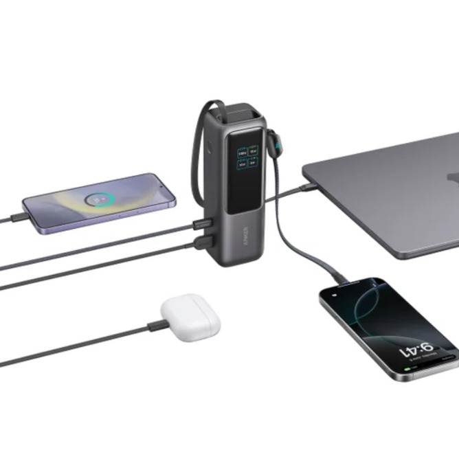 Set off on extended journeys with a huge 25,000mAh capacity that supports your devices through multiple uses, complete with 100W ultra-fast recharging that fuels the power bank to 30 in just 20 minutes.
