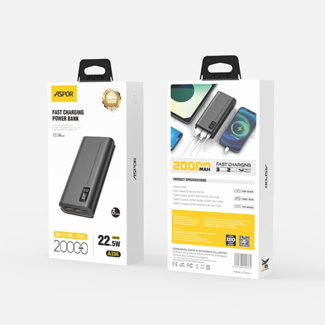 The Aspor A336 combines portability and durability, making it the perfect companion for on-the-go charging.