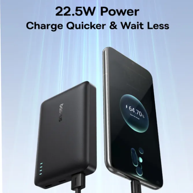 The Baseus EnerFill FP21 delivers a sleek and modern fast-charging experience, offering 10,000 mAh battery capacity and 22.5 W across versatile ports (2 × USB‑C, 1 × USB‑A). It’s particularly well-suited for everyday phone and accessory charging, with dual USB‑C enabling convenient bi-directional charging and included cable. The compact design and safety features make it a practical companion—though if you need simultaneous high-power charging, its combined output may limit performance.