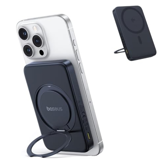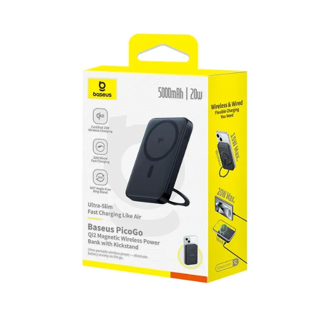 | Brand | Baseus PicoGo Qi2 5000mAh Magnetic Wireless Power Bank with 360° Rotatable Ring Stand, 20W Ultra-Slim Fast MagSafe Battery Pack with USB-C In/Out Port 15W Wireless Charger |