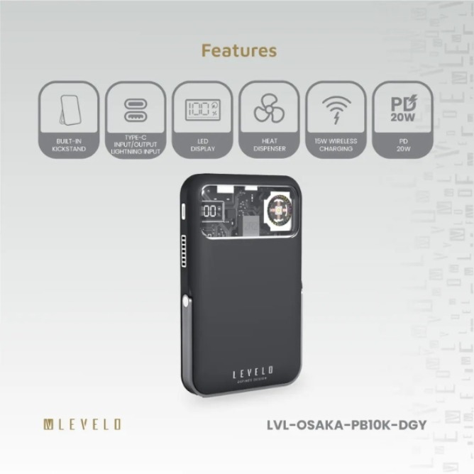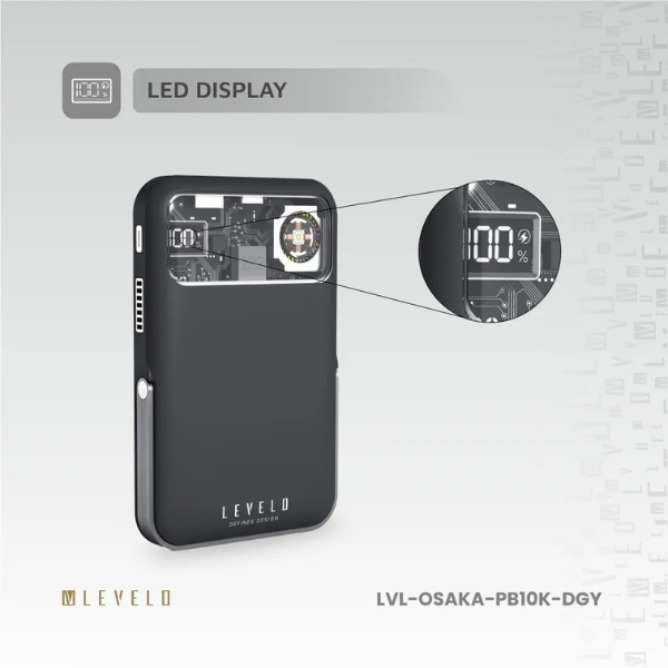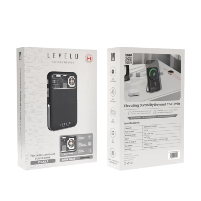 The Levelo Osaka Portable 10000mAh Power Bank delivers high-capacity charging in a sleek and durable design. With a 10000mAh / 38.5Wh battery, it keeps your devices powered throughout the day, whether at home, work, or on the go. Its plastic and rubber finish adds both elegance and resilience, making it a reliable companion for everyday use.