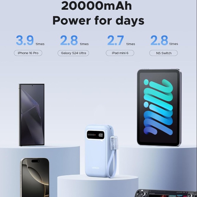 Featuring a smart digital display, premium PC + ABS construction, and advanced multi-layer safety protection, this power bank delivers reliable performance in a slim, lightweight design—perfect for smartphones, tablets, wireless earbuds, and other USB-powered devices.