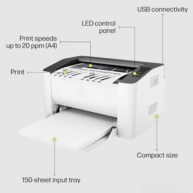 | Paper Handling Input | 150-sheet input tray, supports 75 g/m² paper |