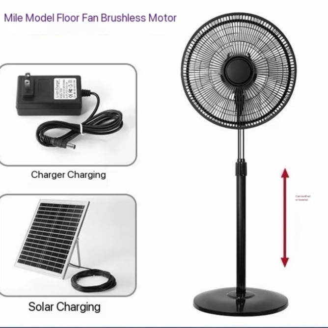 Solar charging fan with strong wind, 16-inch outdoor floor fan for home use, energy-saving, ultra-long battery life,