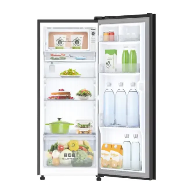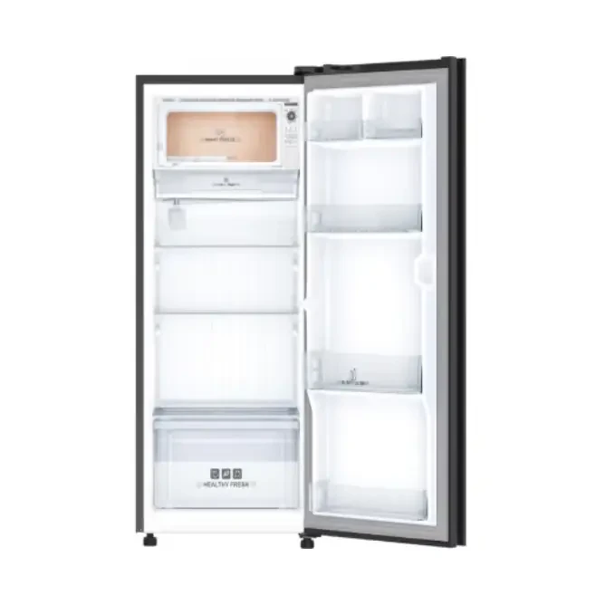 Presenting the Abans Lotus Charm Single Glass Door Inverter Refrigerator a 212L , direct-cool refrigerator with Metal Cool finish. It features an advanced inverter compressor, humidity controller, and sleek black glass design. Built to keep food fresh, operate quietly, and elevate any kitchen’s style.