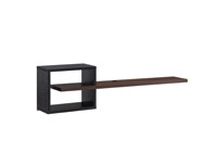 Sleek and compact, this shelving unit is the perfect floating piece to accompany any modern living space. The open, two-tone design accentuates the unique geometric structure while the wide center shelf features a built-in cord management hole for easy organization.