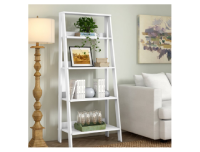 Revamp that cluttered corner with this contemporary ladder bookcase. Use the four shelves to showcase books and games. Potted plants will get plenty of sunlight within the shelves thanks to the open sides, while the raised backs ensure that your treasures will stay safe and sound. Put this piece in the living room of the home office to add sophisticated organization where you need it, and trust that the sturdy Melamine Wood frame will step up to the task.