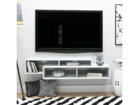 Mount your TV on the wall above the four staggered compartments which are ideal for today's assortment of compact electronic devices as well as decorative items like plants or photographs. Each shelf has cutouts so you can keep your cables and wires organized from top to bottom.