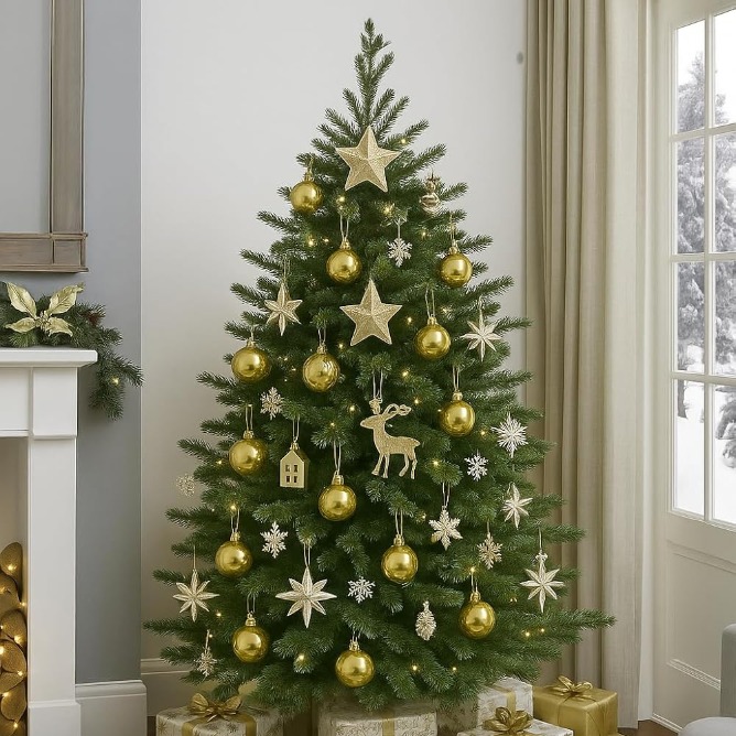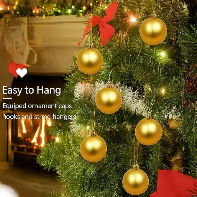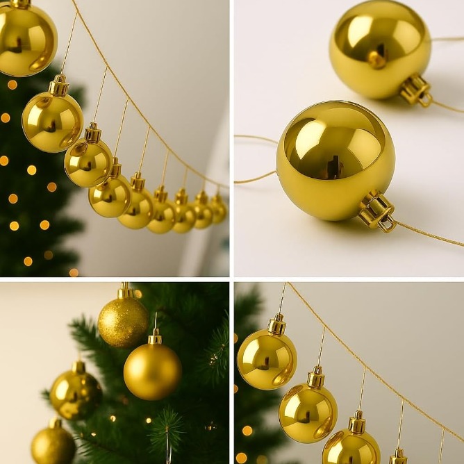 The glimmering gold finish adds elegance to Christmas trees, garlands, wreaths, or table center pieces. Ideal for DIY crafts, gift sets, or seasonal decoration projects, these baubles bring a modern and stylish festive vibe to any setup.