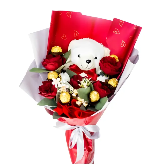 Features 8 Ferrero Rocher chocolates and an adorable teddy