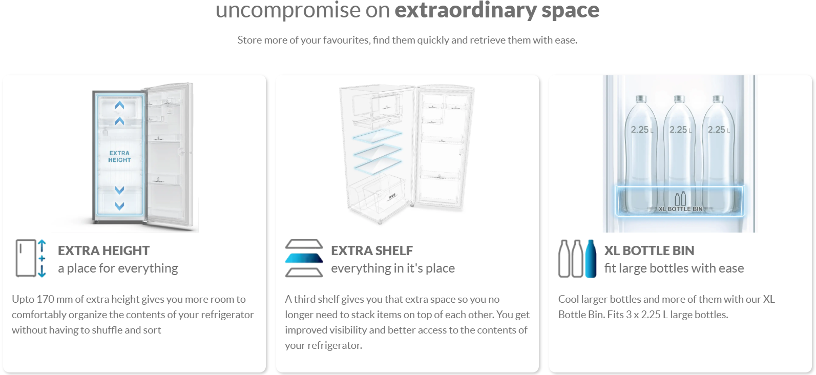 | Refrigerator Shelf Type | 3 Toughened Glass Shelves | |