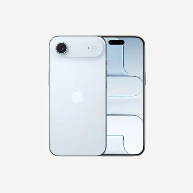 Wrapped in aerospace-grade aluminum with a matte glass back, the iPhone 17 Air is available in elegant colors like Sky Silver, Midnight Black, Rose Quartz, and Pacific Blue. It’s IP68 dust- and water-resistant for everyday durability.