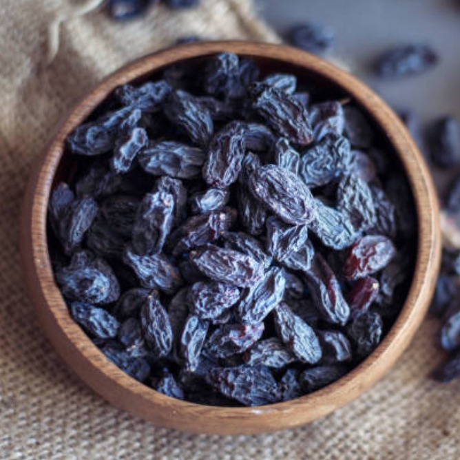 Black raisins are made by drying out black Corinth seedless grapes under the sun or in a dehydrator. They have a darker colour compared to the other raisin varieties and are tangy and sweet. Black raisins are used in preparing smoothies, desserts and even as a garnish on salads. Black raisins can come up as one of the best solutions for hair fall. Go Vegan premium black raisins are large in size and have a sweet fruity taste and soft chewy texture The antioxidant content in black raisins makes it perfect for killing the free radicals that lead to skin damage and finally ageing. It also protects the skin from sun damage and pollution all of which causes fine lines, wrinkles and dullness on the face. Black raisins contain polyphenolic antioxidants called Catechins, which can lower your chances of being prone to infections.