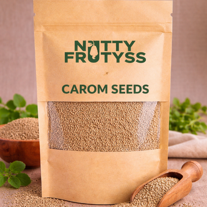 Add bold aroma and powerful flavor to your dishes with Nutty Frutyss Carom Seeds (Ajwain). Known for their strong, thyme-like taste and digestive benefits, carom seeds are a staple ingredient in many traditional recipes.