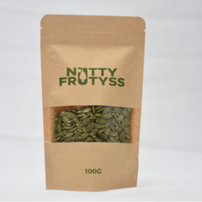 Discover the wholesome goodness of Nutty Frutyss Organic Pumpkin Seeds in a convenient pack. These nutritious seeds are sourced from organic farms, ensuring the highest quality and taste. Packed with essential nutrients like protein, fiber, and antioxidants, they make a delicious and healthy snack.