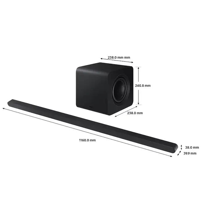 | Dimensions (Soundbar) | 27.2 × 118.2 × 57.6 cm |