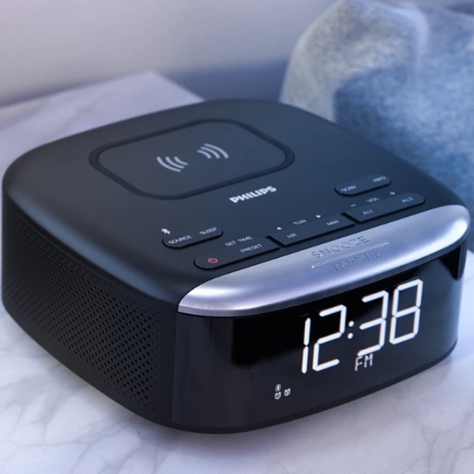 Upgrade your bedside with the Philips Clock Radio Series 7000 TAR7606/10, combining a large, clear digital display with Bluetooth streaming and FM radio for a complete audio experience. Enjoy your favorite music, podcasts, or stations with stereo sound (4W RMS output), while the built-in wireless Qi charger (9W) and USB charging port (5V/1A) keep your devices powered throughout the day and night.