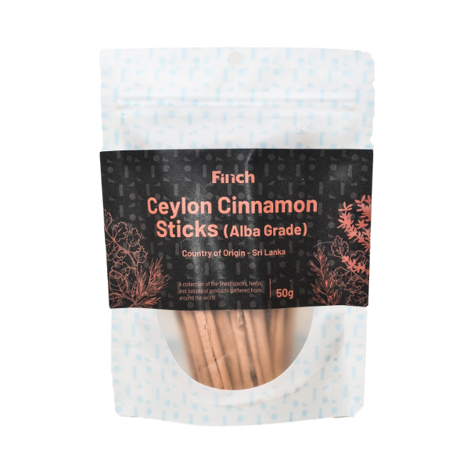 Finch Cinnamon Sticks (Alba Grade) – 50 g are premium‑quality pure Ceylon cinnamon quills, sourced directly from Sri Lanka — the origin of “true cinnamon.” The Alba grade is known for its thin, delicate, naturally sweet and aromatic sticks, prized for gourmet cooking, baking, beverages and wellness uses. These hand‑rolled quills infuse dishes with subtle warmth and rich fragrance, making them a luxurious addition to both traditional and modern culinary creations.
