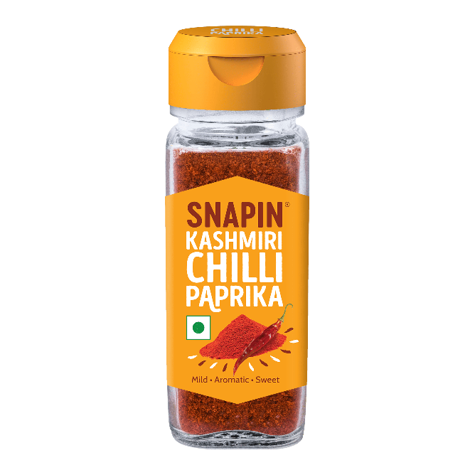 SNAPIN Kashmiri Chili Paprika is a vibrant red spice made from high-quality Kashmiri chillies (Byadagi variety), specially ground to deliver rich color, mild heat, and subtle smoky flavor. This versatile paprika adds depth and visual appeal to a wide range of dishes without overpowering them, making it perfect for everyday cooking and creative recipes alike.