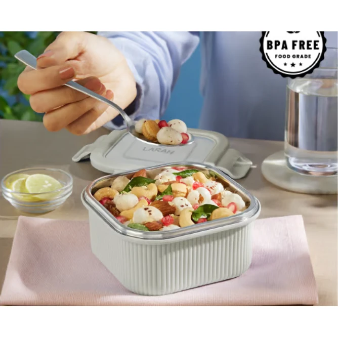 Got leftovers? No problem! Larah Freshbyte Square Container is here to keep your food fresh, safe, and ready whenever you need it. Made from high-quality thermoware material, this durable and lightweight container is perfect for storing dal, sabzis, curries, rice, snacks, and more. It helps maintain food temperature while ensuring everyday toughness for regular use. The microwave-safe (microsafe) design lets you reheat your meals directly in the container (without lid), making it ideal for busy mornings and quick lunches. Its airtight lid prevents leaks and locks in freshness, so your food stays tasty for longer. The smart square shape stacks neatly in your fridge or cabinets, saving space and keeping your kitchen organized. With Larah Freshbyte Square Container, freshness meets convenience—every single day.