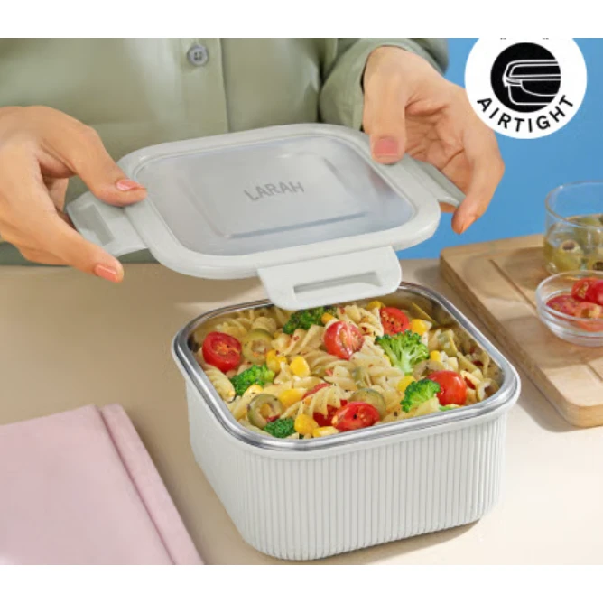 Got leftovers? No problem! Larah Freshbyte Square Container is here to keep your food fresh, safe, and ready whenever you need it. Made from high-quality thermoware material, this durable and lightweight container is perfect for storing dal, sabzis, curries, rice, snacks, and more. It helps maintain food temperature while ensuring everyday toughness for regular use. The microwave-safe (microsafe) design lets you reheat your meals directly in the container (without lid), making it ideal for busy mornings and quick lunches. Its airtight lid prevents leaks and locks in freshness, so your food stays tasty for longer. The smart square shape stacks neatly in your fridge or cabinets, saving space and keeping your kitchen organized. With Larah Freshbyte Square Container, freshness meets convenience—every single day.
