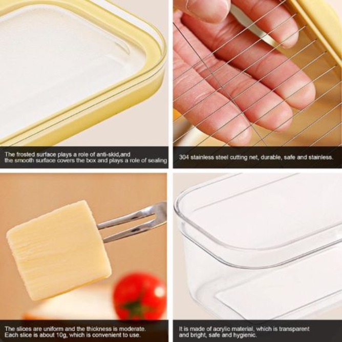 Designed with a built-in stainless steel cutting grid, this container allows you to cut butter into perfect, even slices with just one press. No mess, no hassle!