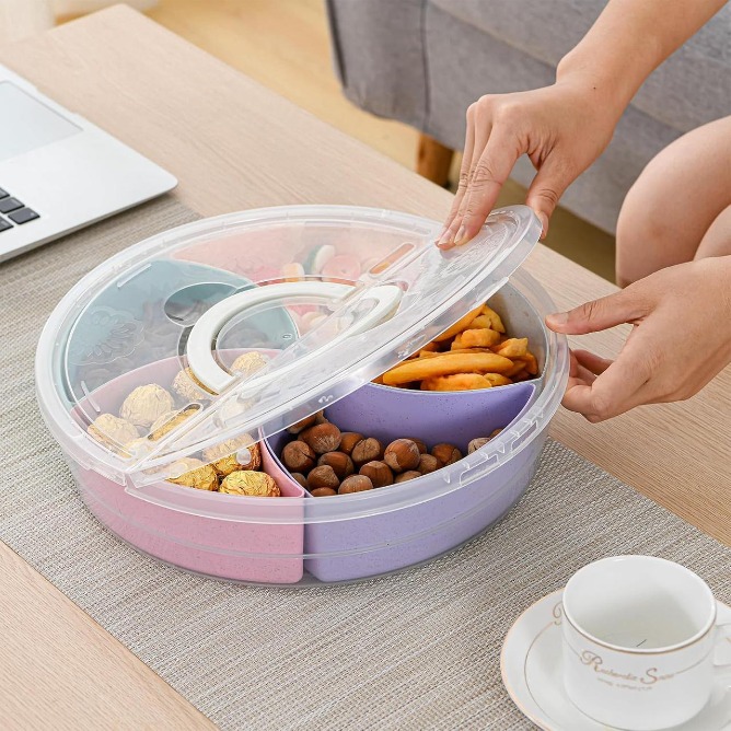 Keep your favorite treats fresh and neatly arranged with this Candy Storage Box with Cover. Perfect for storing candies, dry fruits, snacks, or small kitchen items — it’s both functional and decorative!