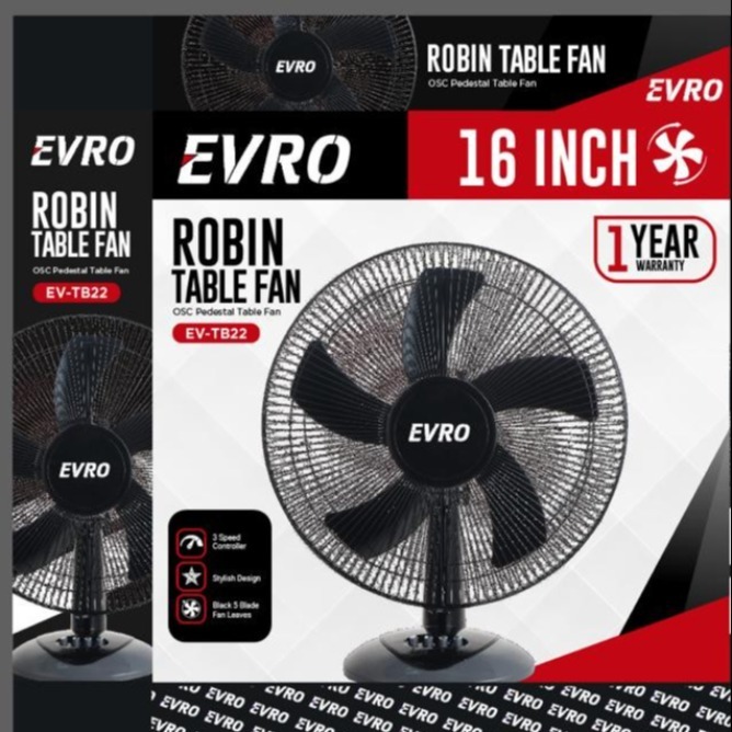 Stay cool and comfortable even on the hottest days with the EVRO Robin Table Fan EV-TB22. Designed for both home and office use, this 16-inch table fan delivers powerful airflow while maintaining energy efficiency and quiet performance.