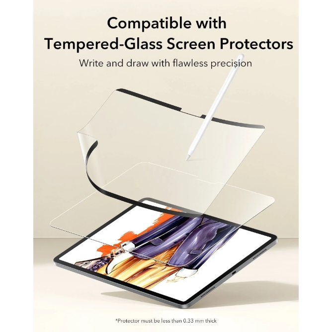 The paper-textured surface offers a controlled, professional drawing experience that turns your tablet into a true digital canvas or notebook. Thanks to its magnetic design, it snaps on cleanly with a bubble-free finish, ensuring nothing gets in the way of your creativity.
