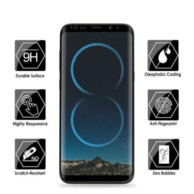 Protect your Samsung Galaxy S8 curved screen with this premium full glue tempered glass, specially designed to cover the entire curved display.