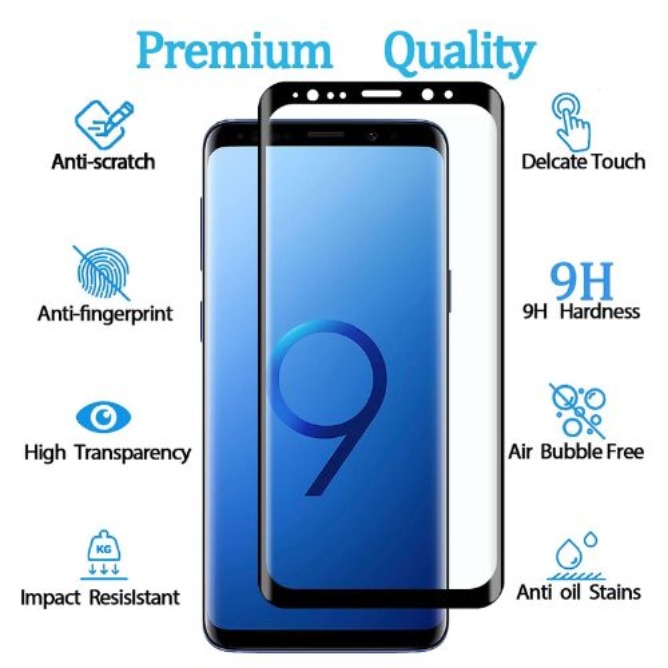 Protect your Samsung Galaxy S9 curved display with this premium full glue tempered glass, designed to cover the entire screen including curved edges.