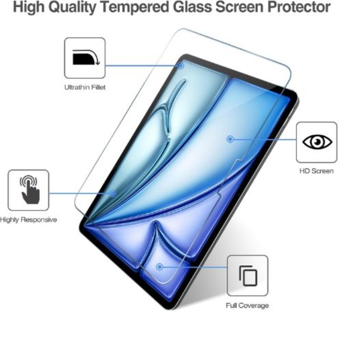 Protect your iPad Air 13 inch or iPad Pro 13 inch with this high-quality tempered glass screen protector. Designed with 9H hardness, it provides excellent protection against scratches, impacts, and daily wear while keeping your screen clear and responsive.