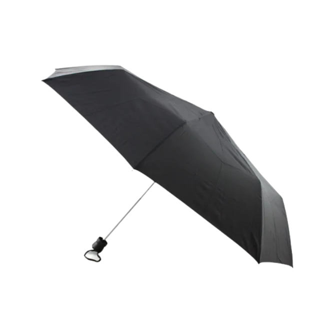 A three folding umbrella with black fabric.