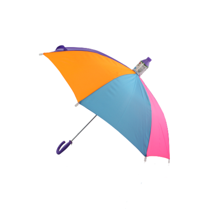 A multi colour kids umbrella with a 16″ frame.This umbrella also has a plastic folding cover which prevents dripping