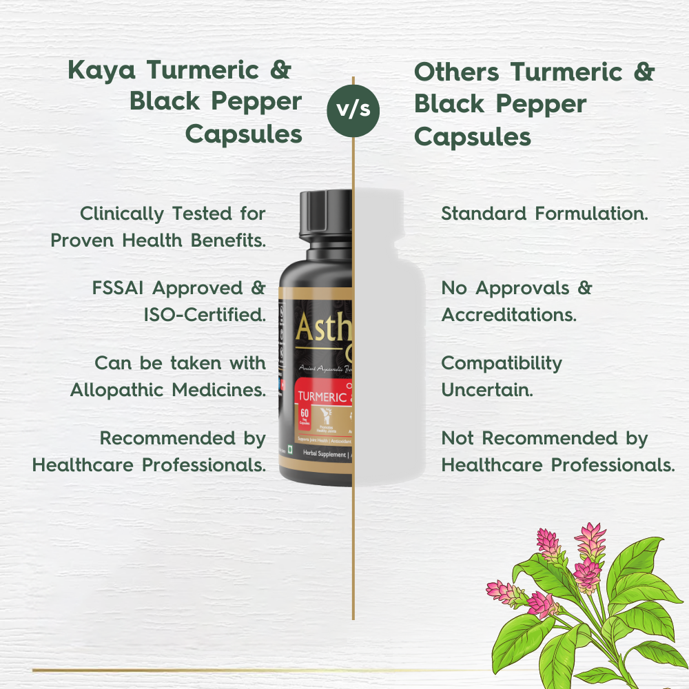 Why choose kaaya?: our turmeric and black pepper capsules are accredited by fssai. They are iso-certified and manufactured in a gmp-certified facility, ensuring the highest quality and safety standards for your well-being.